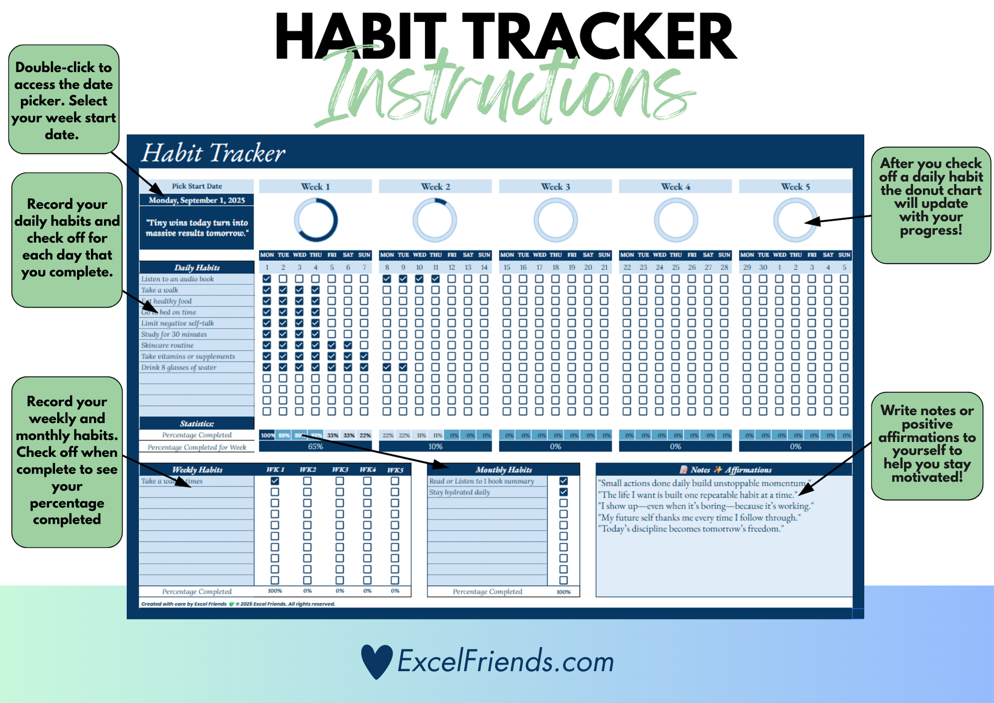 Google Sheets Habit Tracker with Bonus Habits Building Journal