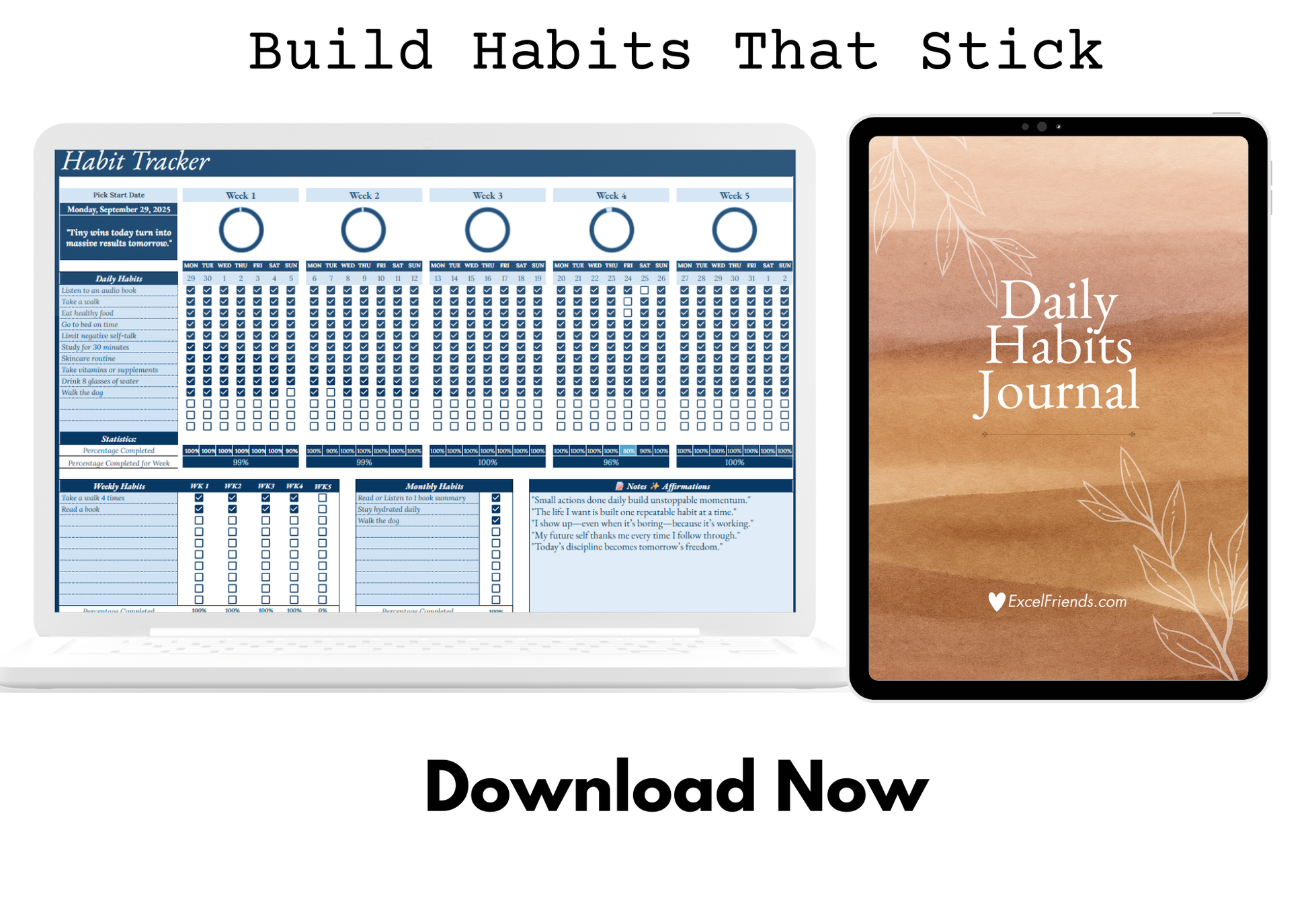 This Habit Power Pack combines a beautifully simple Google Sheets tracker with a calming daily journal to help you stay on track, without the overwhelm.